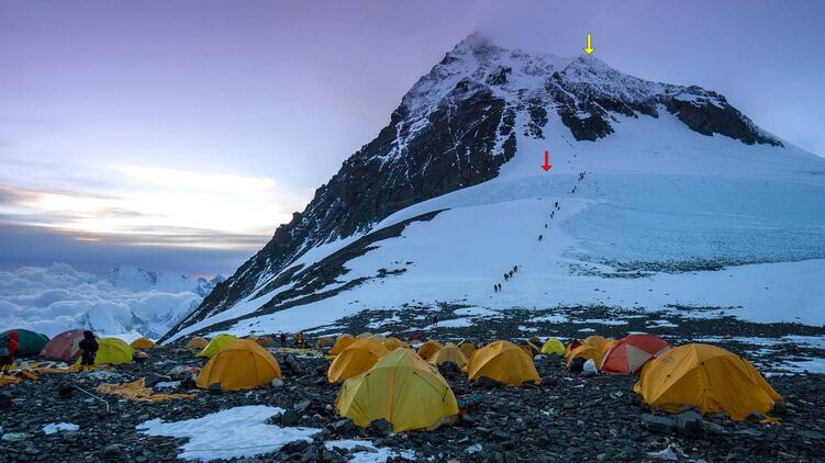 Южное седло - это перевал на высоте 7906 метров между Эверестом и Лхоцзе: первой и четвертой по высоте вершинами на планете. Когда альпинисты поднимаются на Эверест по юго-восточному склону со стороны Непала, последний лагерь устанавливается именно на Южном седле.