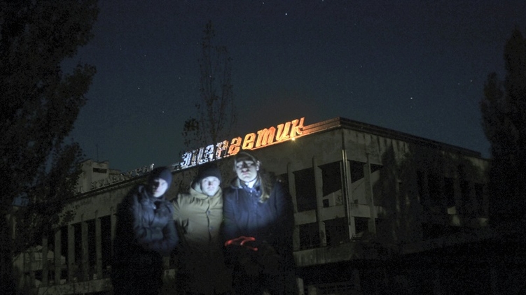 Сталкеры впервые зажгли освещение на Дворце культуры в Чернобыльской зоне
