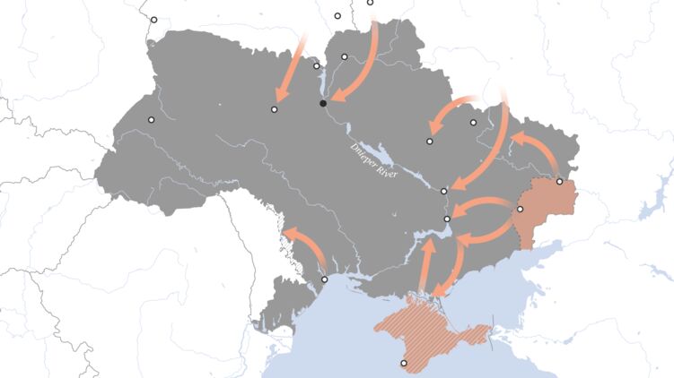 Российский танковый и механизированный контингент будет двигаться в направлении Днепра, окружая Полтаву и Харьков. Со стороны же "ЛДНР" сразу двинутся силы пехоты по трем маршрутам, перекрывая выход к побережью Азовского моря.
