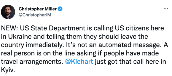 Госдеп США обзванивает американцев в Украине с призывом покинуть страну. Фото: Твиттер