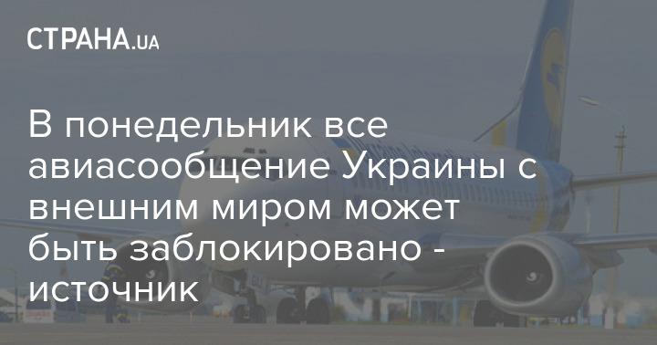 В понедельник все авиасообщение Украины с внешним миром может быть заблокировано - источник