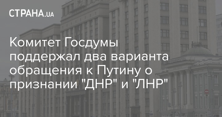 Комитет Государственной думы РФ по делам СНГ, евразийской интеграции и связям с соотечественниками поддержал два варианта постановления об обращении к президенту Российской Федерации с призывом признать "ДНР" и "ЛНР", они оба направлены в Совет Думы.