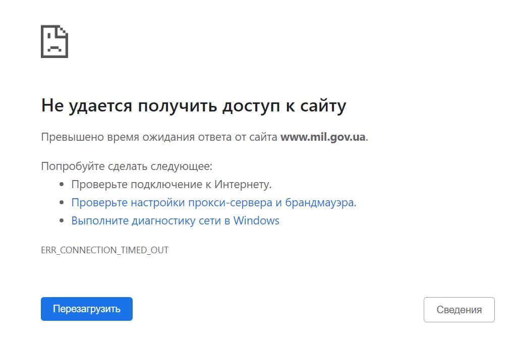 Во вторник, 15 февраля, перестал открываться сайт Минобороны Украины.