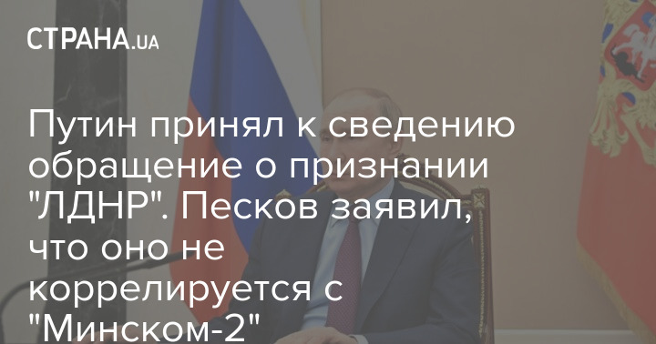 Путин принял к сведению обращение о признании "ЛДНР". Песков заявил, что оно не коррелируется с "Минском-2"