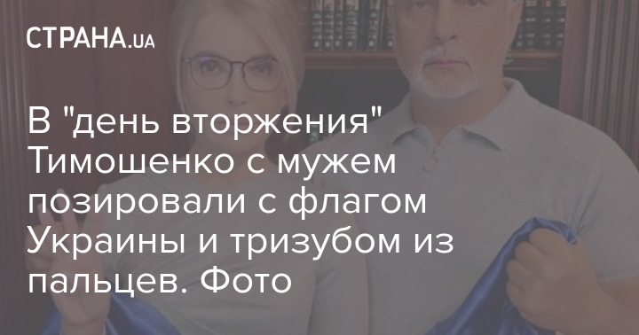В "день вторжения" Тимошенко с мужем позировали с флагом Украины и тризубом из пальцев. Фото