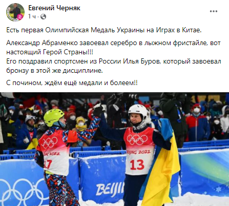 Известный бизнесмен Евгений Черняк порадовался серебряной медали Абраменко и назвал его настоящим героем страны. Отдельно предприниматель отметил тот факт, что его поздравил российский фристайлер Илья Буров, который занял медаль достоинством чуть ниже.