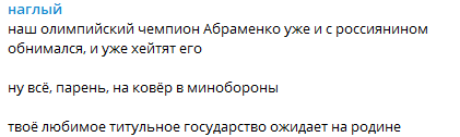"наш олимпийский чемпион Абраменко уже и с россиянином обнимался, и уже хейтят его