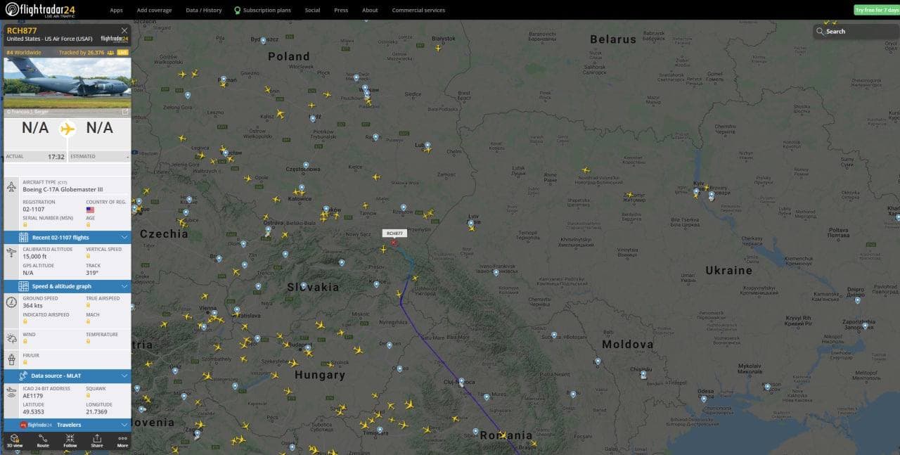 15:29 Глава МИД Британии Лиз Трасс прилетела с визитом в Киев на огромном военно-транспортном самолете Boeing C-17 Globemaster III. Она также обвинила Россию в провокациях, о чем написала в своём Twitter.