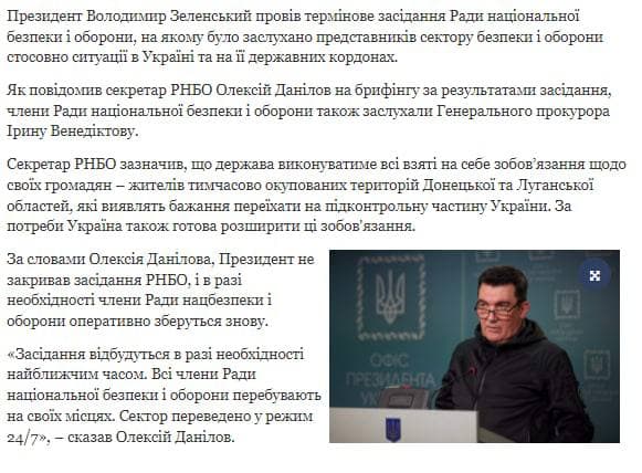 Ближе к вечеру по донецким и российским телеграмм-каналам прошла информация, что из посёлков, которые примыкают к линии фронта с обоих сторон (то есть, и с "ЛДНР", и с Украины) готовится эвакуация населения в связи с предстоящим обострением.