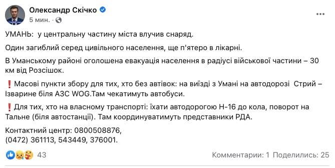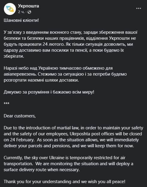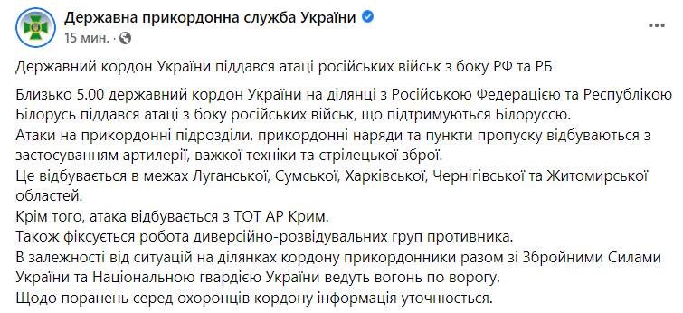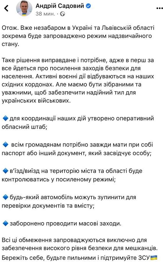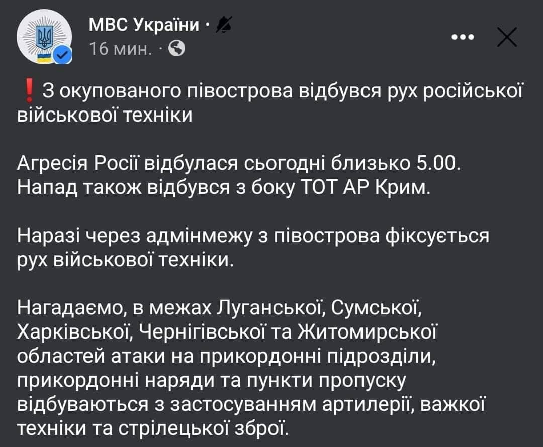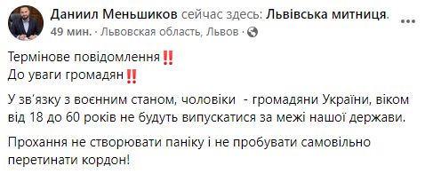 "Просьба не создавать панику и не пробовать самовольно пересекать границу! Победа за нами! Слава Украине!",- написал он.