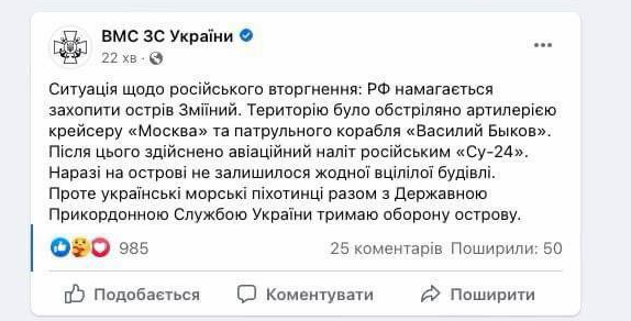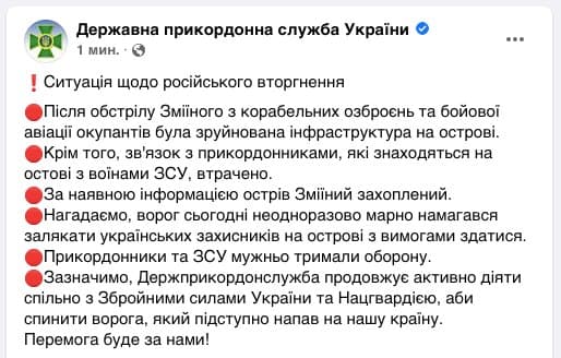 22:03 В Госпогранслужбе заявляют, что остров Змеиный захвачен.