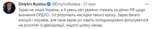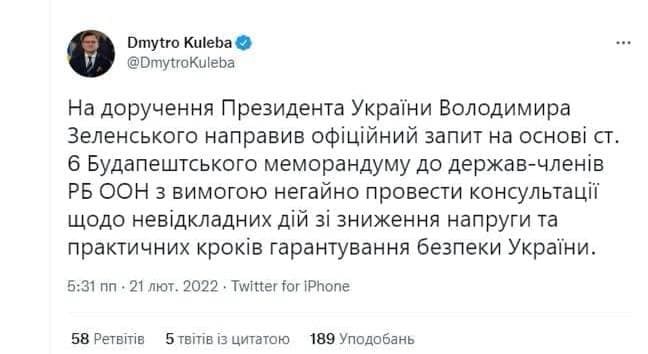 16:56 Глава МИД Кулеба заявил, что Украина обратилась ко всем международным партнерам с требованием осудить обострение в Донбассе, обвинив в нем Россию.