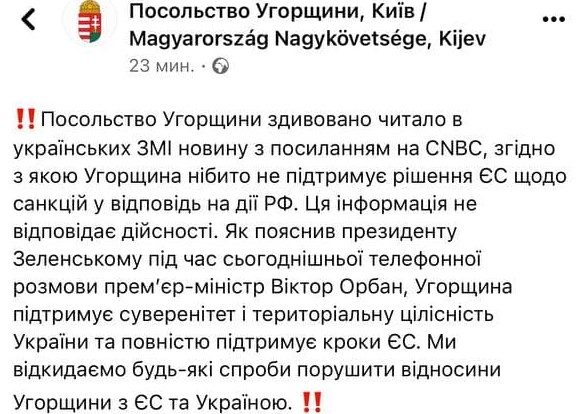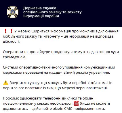 23:07 Укрэнерго опровергает такой фейк: "Сейчас расходится аудио в ключе "супруга брата работает в ОГА, Украина сегодня переходит на европейские энергосистемы. Отключайте электроприборы, иначе все сгорит".