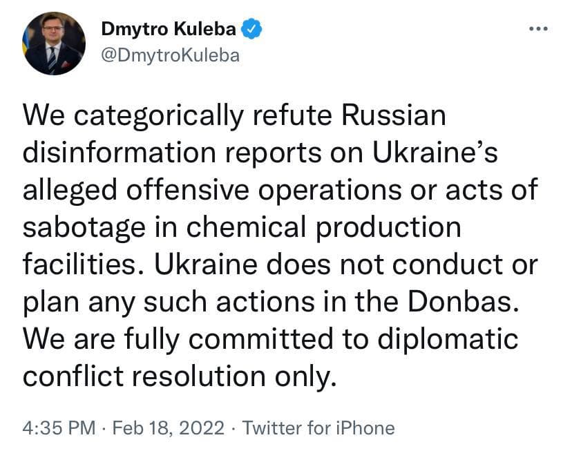 "Сообщения о предполагаемой аномальной военной деятельности Украины на Донбассе являются вопиющей попыткой российского правительства сфабриковать предлоги для вторжения.