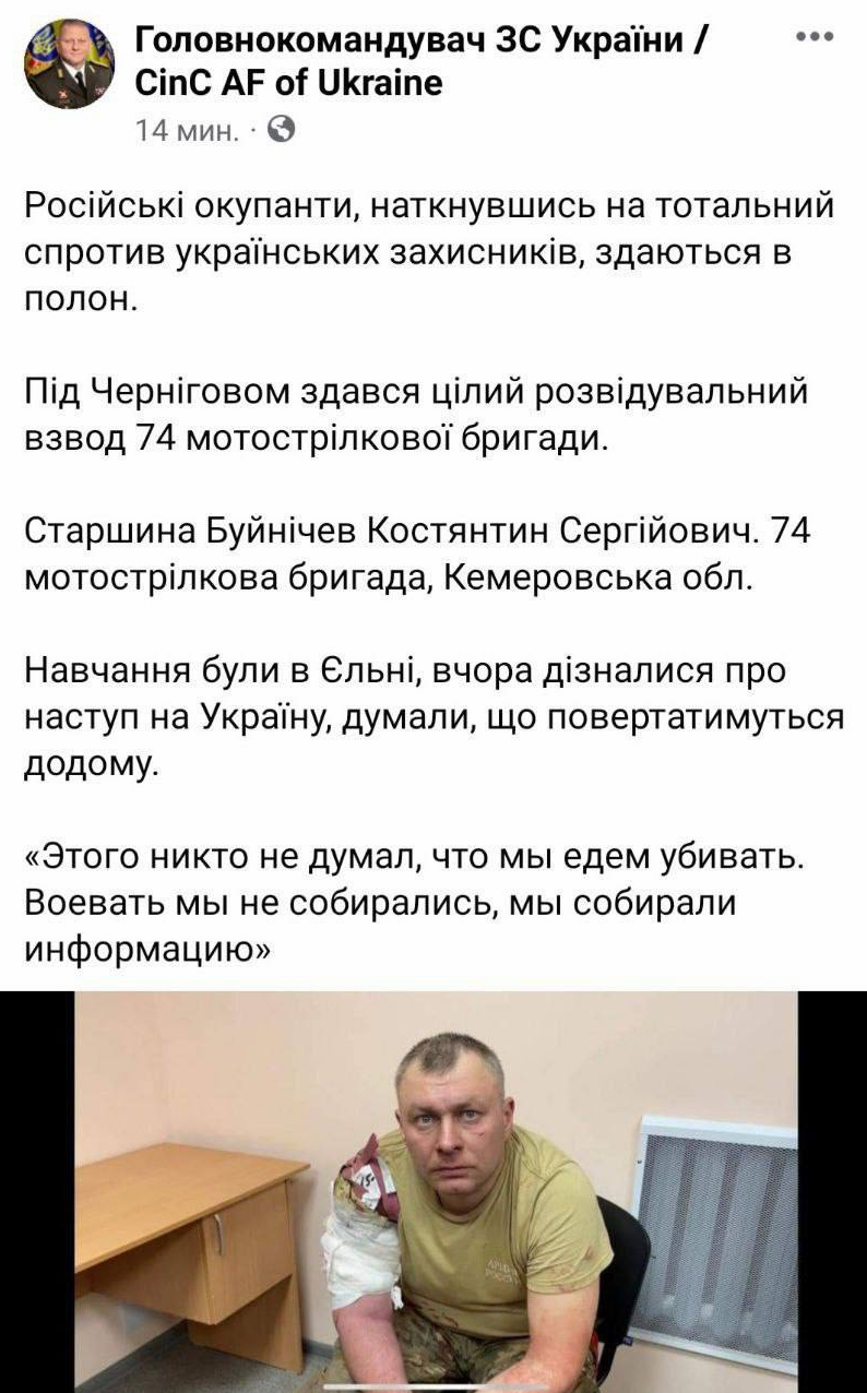 Воздушные силы отражают авиаудары противника, ведут постоянную разведку с применением БПЛА, нанесли удары по колоннам войск РФ в районах населенных пунктов Новая Збуровка, Купянск, Новая Каховка и десанту противника в районе аэродрома Гостомель.