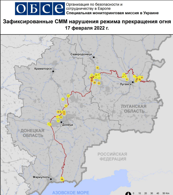 Понятно, что составить объективную картину по заявлениям сторон, обвиняющих друг друга, сложно. Более-менее понятной ситуация становится из отчета ОБСЕ, который затронул первый день обострения - 17 февраля, когда в Станице Луганской попал под обстрел детский сад