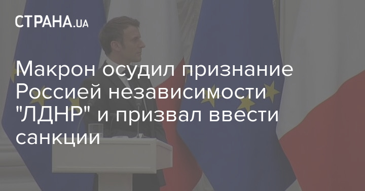 Президент Франции Эммануэль Макрон осудил признание Россией независимости "ЛДНР" и призвал ввести европейские санкции против Российской Федерации.