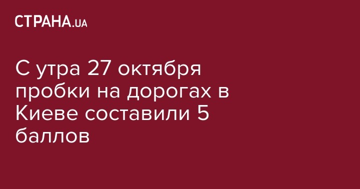 С утра 27 октября пробки на дорогах в Киеве составили 5 баллов