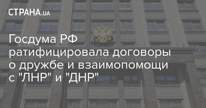 Госдума РФ ратифицировала договоры о дружбе и взаимопомощи с "ЛНР" и "ДНР"