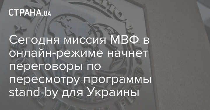 Сегодня миссия МВФ в онлайн-режиме начнет переговоры по пересмотру программы stand-by для Украины