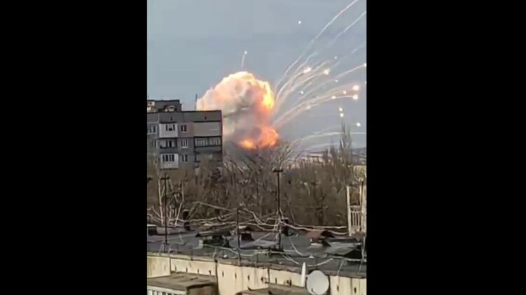 Появилось видео мощного взрыва, который в результате вражеского обстрела прогремел в Мелитополе. Сообщают, что таким образом был уничтожен местный аэродром, но подтверждений информации этого нет. Он находится на окраине города, но на опубликованном видео можно рассмотреть, что в непосредственной близости расположены жилые многоэтажки.