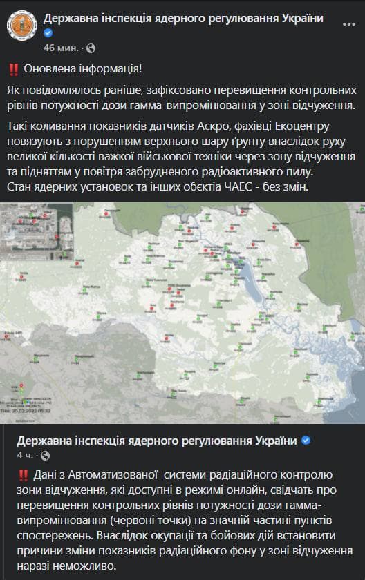 В тоже время Минобороны России, сообщает, что радиоактивный фон в районе Чернобыльской АЭС в норме, а персонал продолжает обслуживать объекты в штатном режиме.