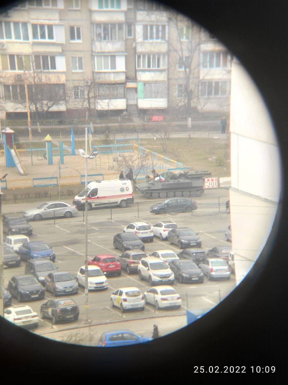 10:02 Киев. По Оболонскому проспекту движется военная техника. Минобороны заявляет о проникновении российской ДРГ.