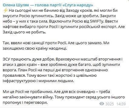 - Зеленский в утреннем обращении снова призвал Россию к переговорам (накануне вечером он сказал, что готов обсуждать нейтральный статус Украины).