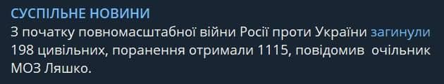 14:04 Кличко о ситуации в городе. "Киев продолжает держать оборону, российских войск в столице нет. Но наши военные, правоохранители, тероборона продолжают выявлять и обезвреживать диверсантов. Ночью были столкновения и перестрелки. Уничтожили несколько ДРГ. Именно ради вашей безопасности мы ввели комендантский час до завтрашнего утра. Не выходите, пожалуйста, на улицы. Выйти можно только если по сигналу воздушной тревоги вы идёте в укрытие. Россия обстреливает жилые кварталы столицы Украины. Россия убивает украинцев по всей Украине. В Киеве с начала атаки 24 февраля погибли 9 мирных жителей. В том числе один ребенок, 4 неизвестных лица и 18 военных теробороны. Ранены 106 людей. Из них - 47 гражданских, в частности, трое детей..."