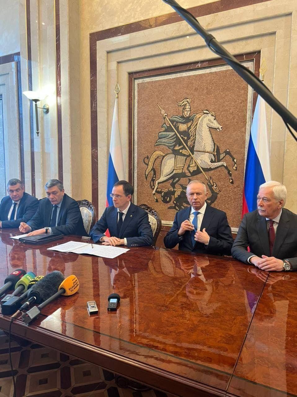 Российскую делегацию возглавляет Мединский. Экс-министр культуры. Уроженец города Смела Черкасской области.