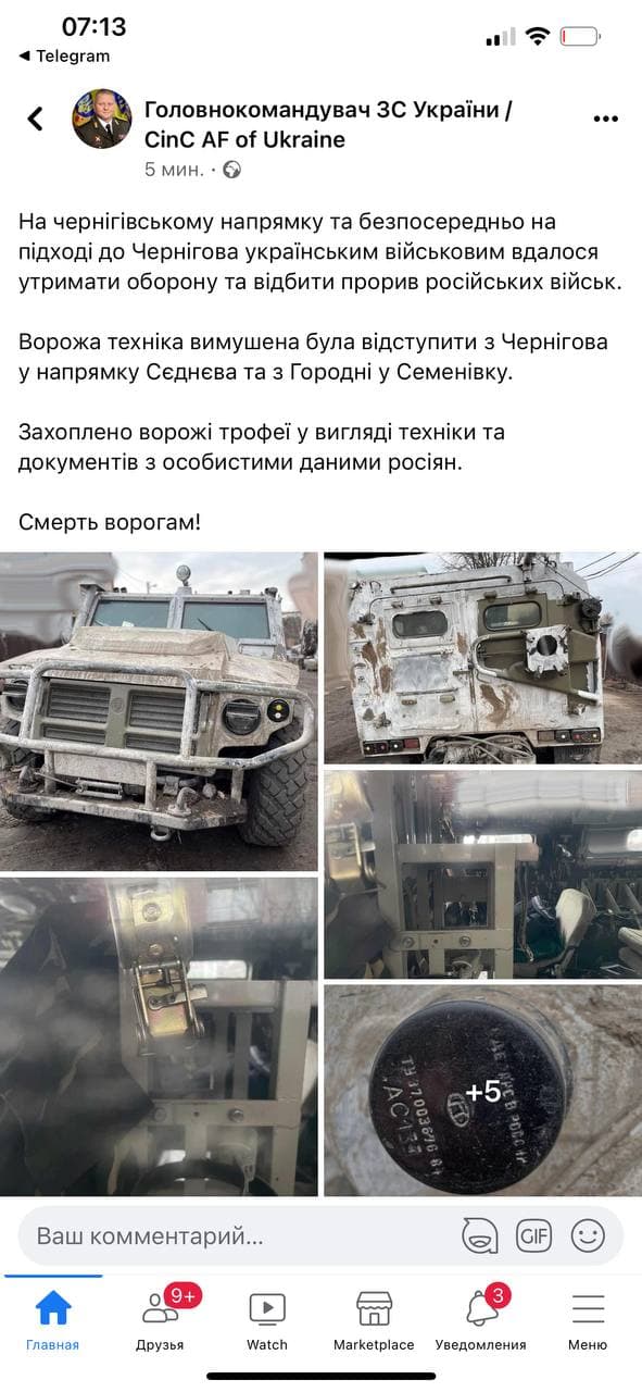 08:15 Главком ВСУ Залужный заявил, что под Черниговом остановлены российские войска. Атака отбита.