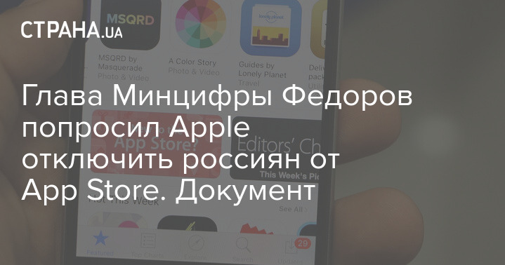 Министр цифровой трансформации Украины Михаил Федоров обратился к главе компании Apple Тиму Куку и попросил отключить россиян от App Store.