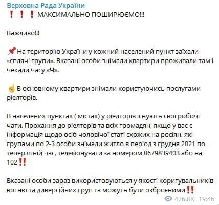 В квартиры по всей Украине заехали "спящие группы" диверсантов. Власти просят сообщать о таких съемщиках