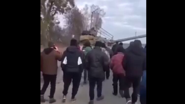Под Черниговом местные жители остановили колонну российских танков. Видео