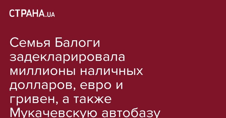 Семья Балоги задекларировала миллионы наличных долларов, евро и гривен, а также Мукачевскую автобазу