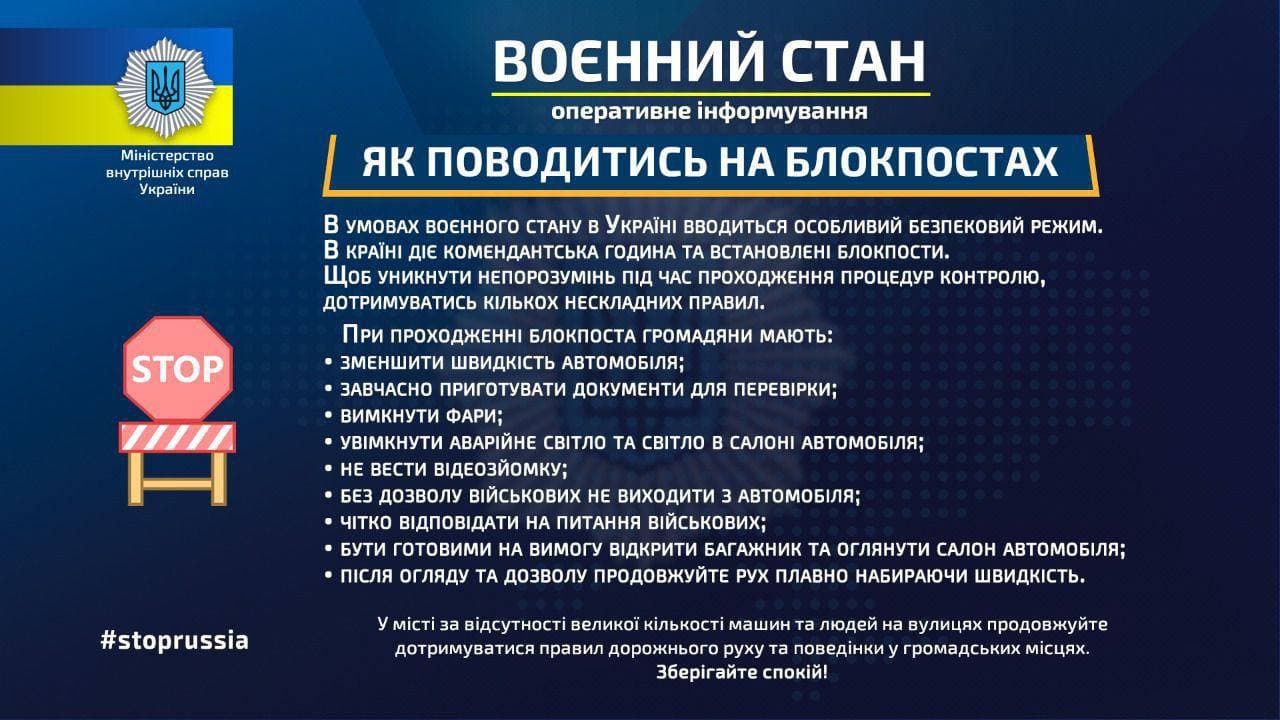 09:20 Памятка от МВД, как водителям вести себя на блокпостах во время военного режима.