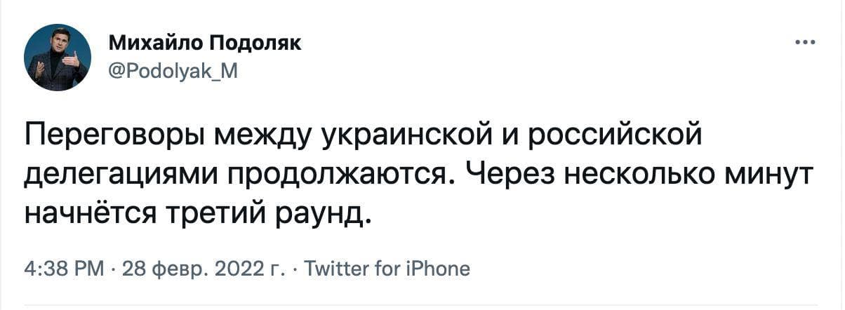 19:11 Комментарий Подоляка по итогам переговоров. Тон более пессимистичный чем раньше, но с некоторым просветом.