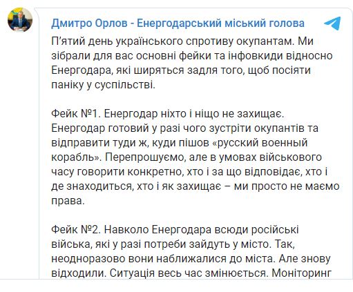 10:00 В Энергодаре в Запорожской области в целом ночь прошла спокойна, с отдельными нарушениями комендантского часа, но без мародерства. Об этом заявил мэр города Дмитрий Орлов.