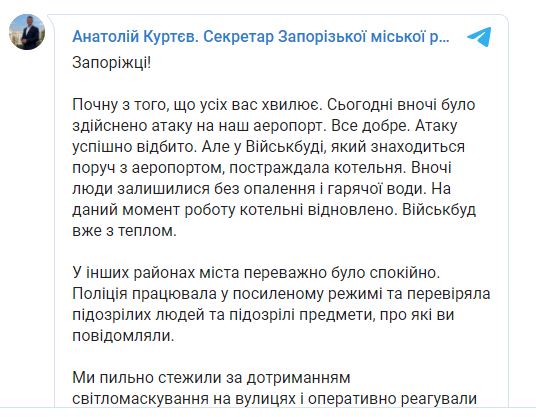 Отметим, что ночь в Киеве, за исключением сработавшей под утро воздушной тревоги, была спокойной.