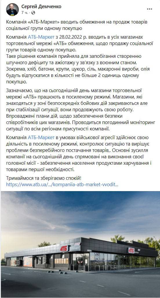 20:35 АТБ вводит ограничения на продажу продуктов социальной группы в одни руки.