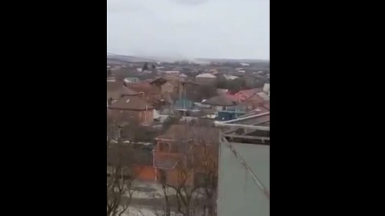 Жители Таганрога говорят, что ракету сбила система ПВО и ее обломки упали на аэропорт, вызвав там возгорание.