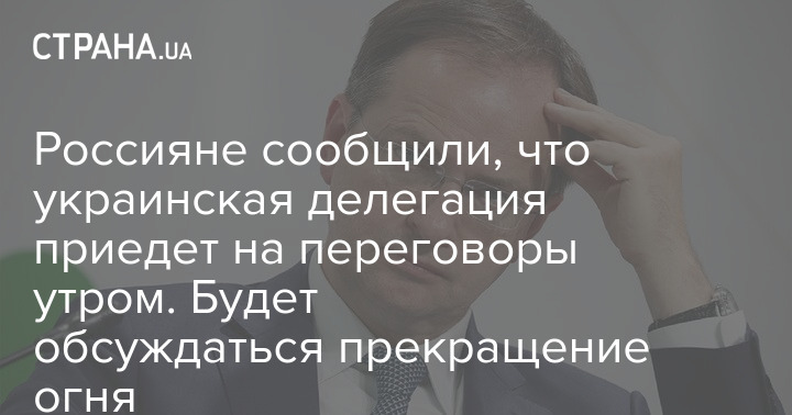 Также он сказал, что на переговорах среди прочего будет обсуждаться прекращение огня. Мединский также сказал, что во время первых переговоров 28 февраля стороны озвучили свои позиции и предложения.