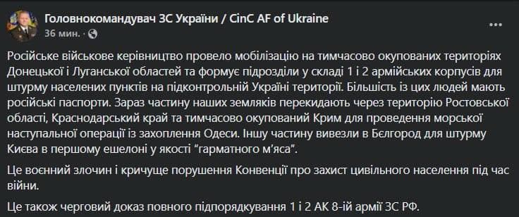 10:18 Главком ВСУ Залужный заявил о сбитом самолёте под Ирпенем.