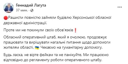 10:08 Обращение Терехова к харьковчанам. Говорит, что Харьков обязательно выстоит. Начали получать гуманитарную и медицинскую помощь, волонтеры развозят продукты питания, а все коммунальные платежи тем, кто сейчас готовит людям еду для харьковчан, будут аннулированы.