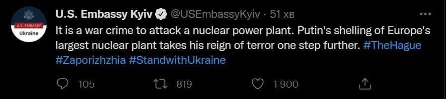 17:38 США не зафиксировали каких-либо радиоактивных утечек на Запорожской АЭС — сообщает Пентагон.