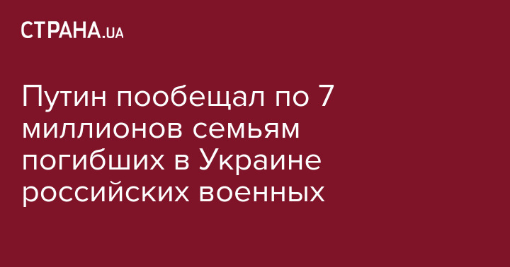 Владимир Путин пообещал по 7 миллионов рублей семьям погибших в Украине российских военных.