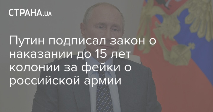 В пятницу, 4 марта, российский президент Владимир Путин подписал закон об уголовной ответственности "за фейки о вооруженных силах", за который ранее единогласно проголосовала Госдума.
