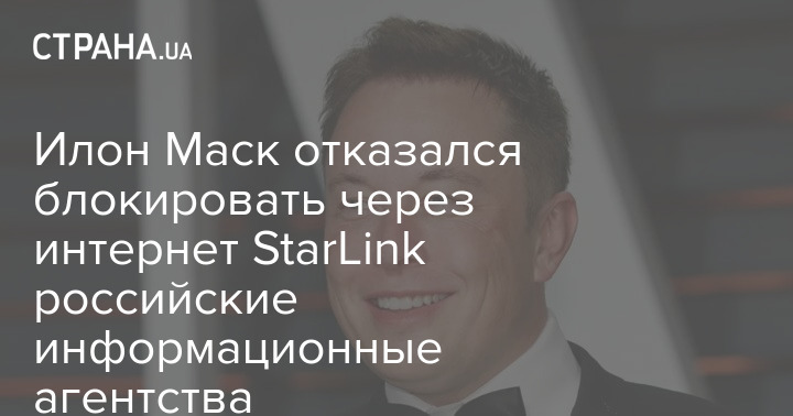 Американский миллиардер и основатель проекта глобальной раздачи интернет-сети Starlink Илон Маск отказался блокировать российские информационные агентства. Об этом он написал у себя в Twitter.