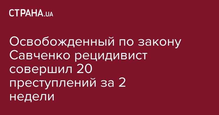 Освобожденный по закону Савченко рецидивист совершил 20 преступлений за 2 недели