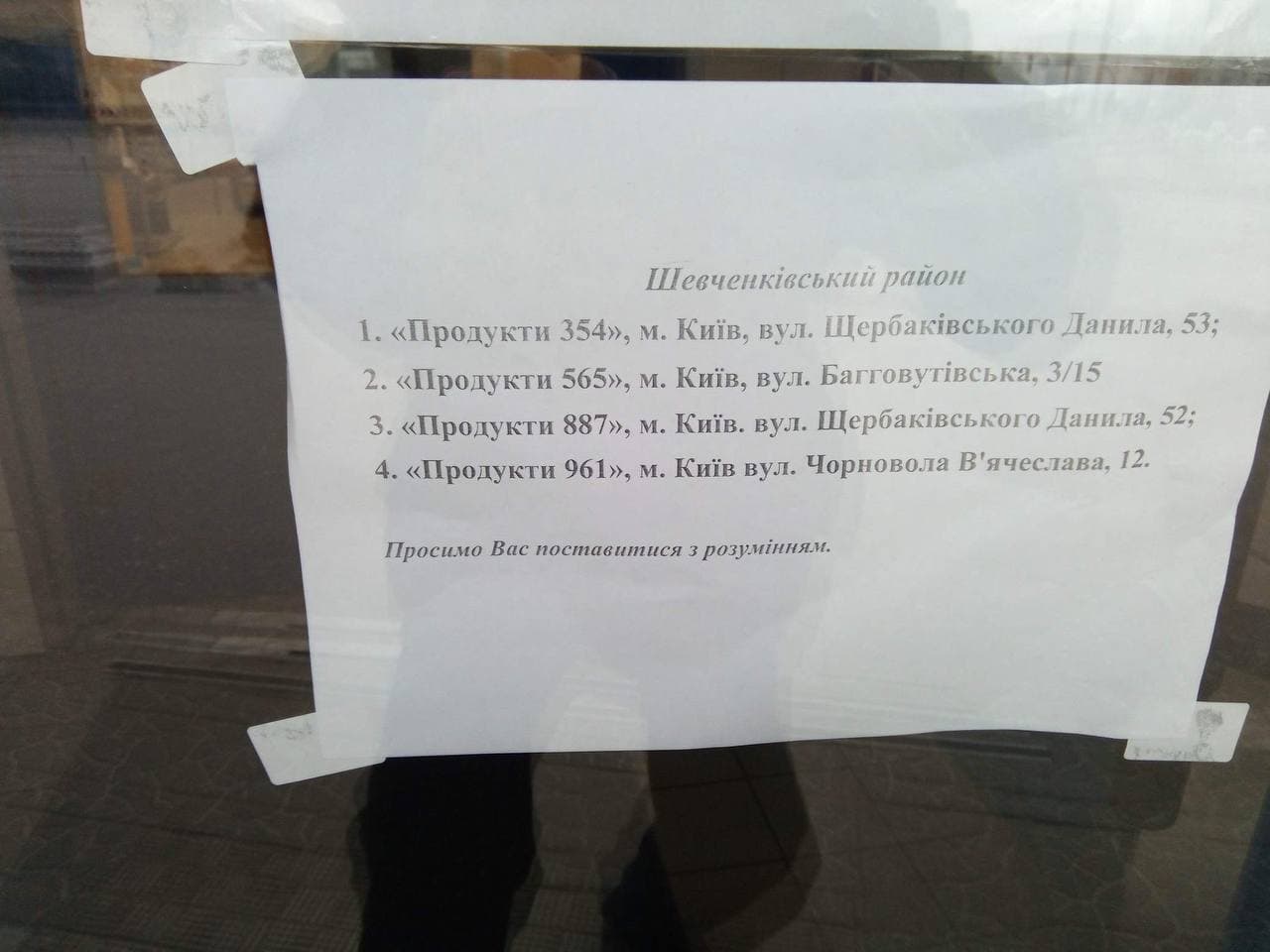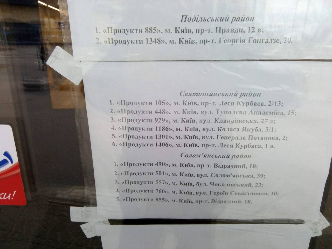 Сеть "АТБ" вывесила на входе в магазины список работающих точек: